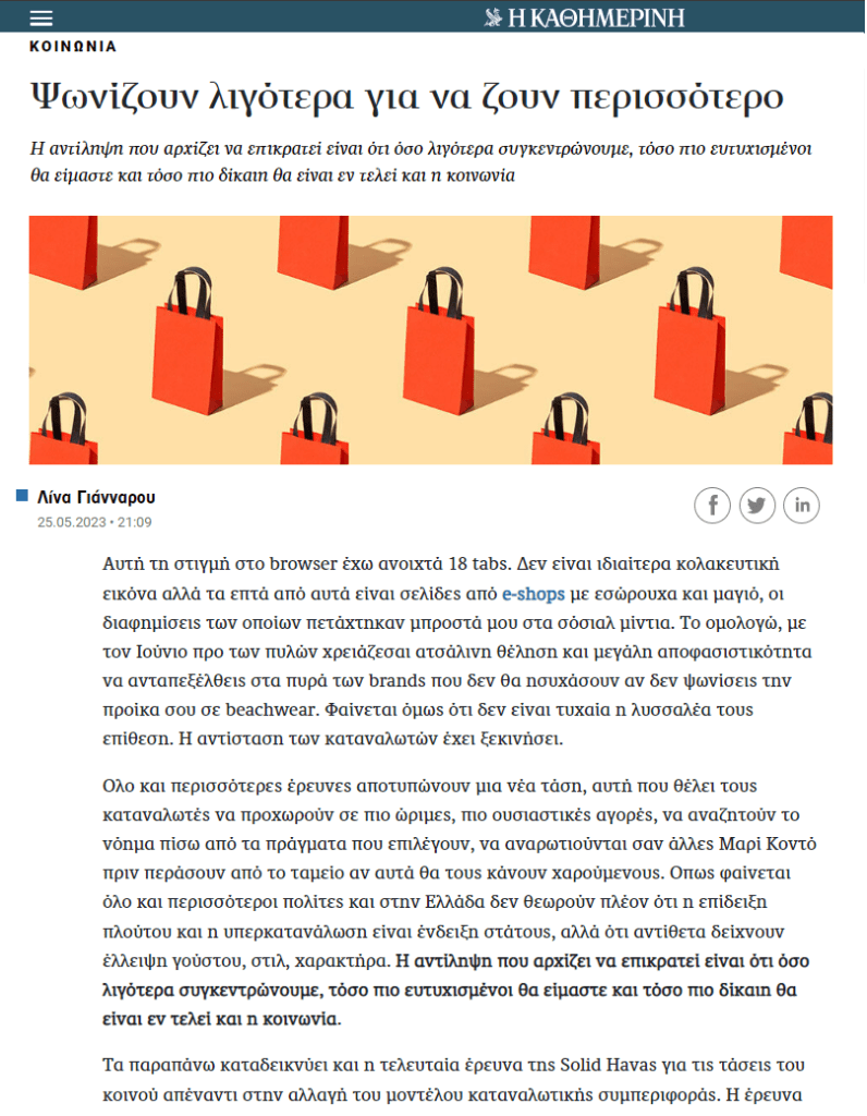 Prosumers Report “Joyful Frugality” #SolidHavas #HavasGroup @Kathimerini & Skai FM