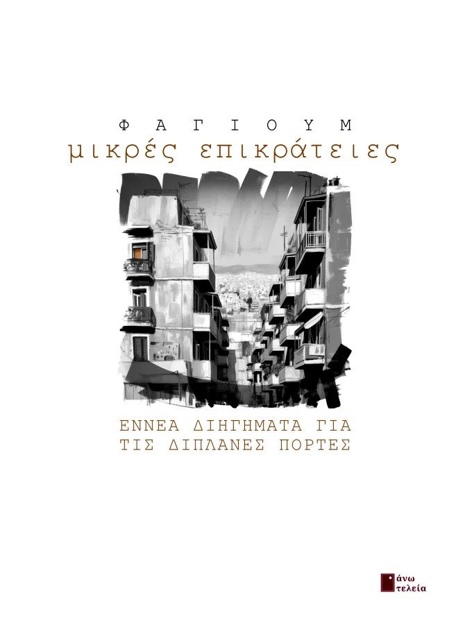 Μικρές Επικράτειες. Εννέα διηγήματα για τις διπλανές πόρτες. Ιστορίες για ανθρώπους της πόλης που την παλεύουν όπως μπορούν ή όπως νομίζουν.