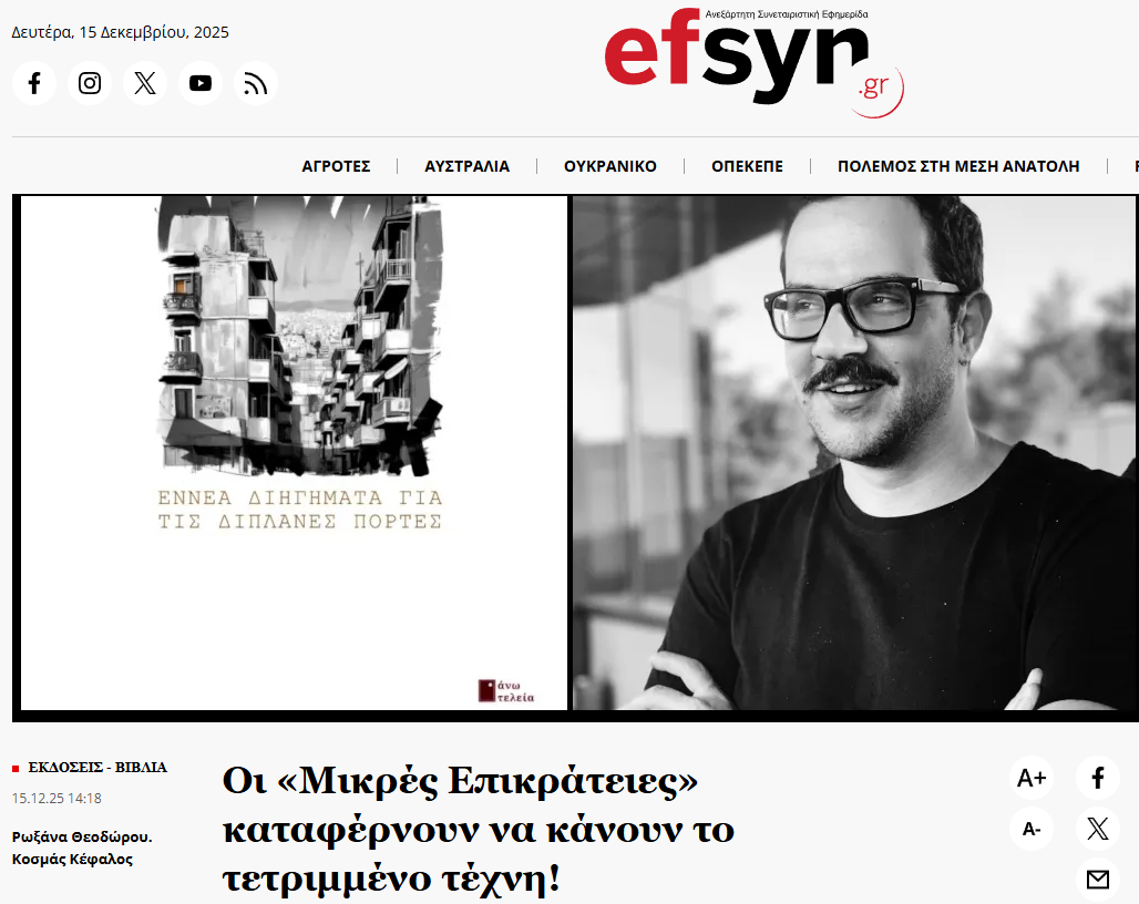 Presentation and Interview @esyn.gr about my new book “Small Territories”